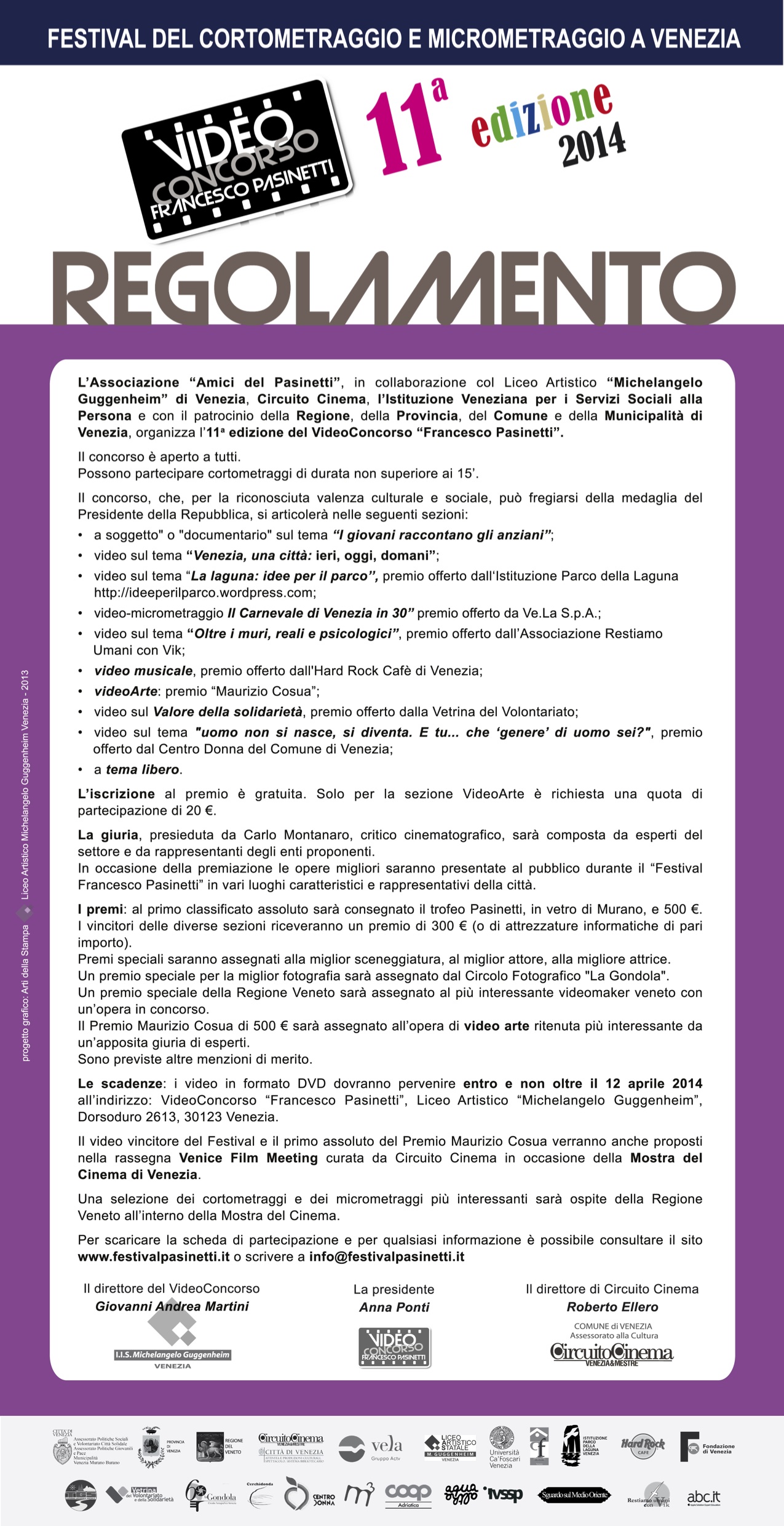 "Ma dove sono gli uomini? Nel discorso sull'uguaglianza e sul genere, dove e come si collocano? Con chi e a chi parlano le donne? [...] Cosa sta cambiando per l’uomo? Come sta cambiando la sua realtà? È possibile che i molti privilegi di cui ha beneficiato e beneficia non siano costati anche a lui un qualche prezzo? Oppure, al contrario, qual è il prezzo della progressiva erosione di tali privilegi?" VideoConcorso "Francesco Pasinetti", Dorsoduro 2613, 30123 Venezia