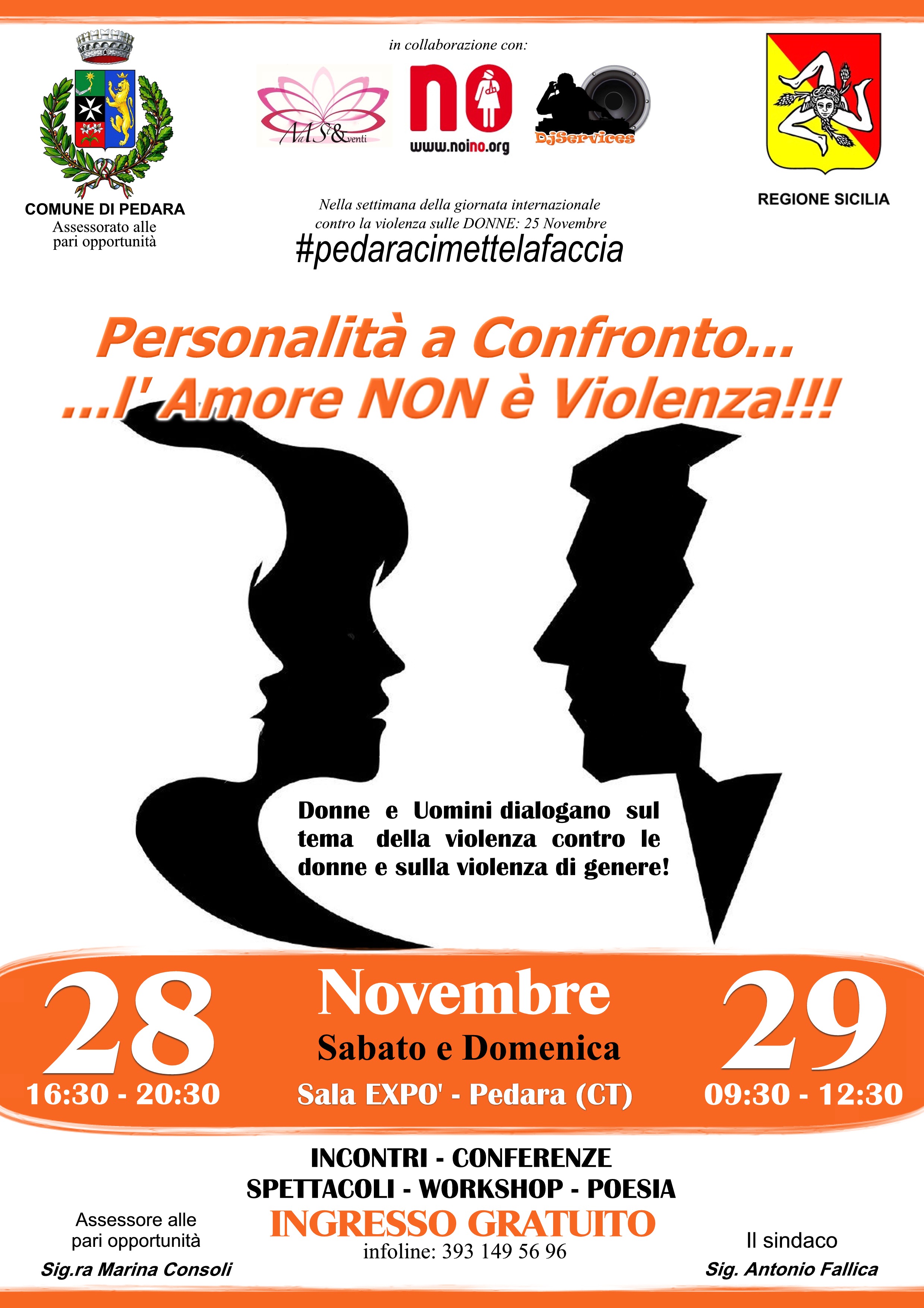 Di NoiNo.org si parla anche al sud: ringraziamo il Comune di Pedara, presso Catania, per aver incluso il logo della nostra community nel programma del suo evento "Personalità a confronto. L'amore non è Violenza", il 28 e il 29 novembre, presso la Sala Expo del Comune.