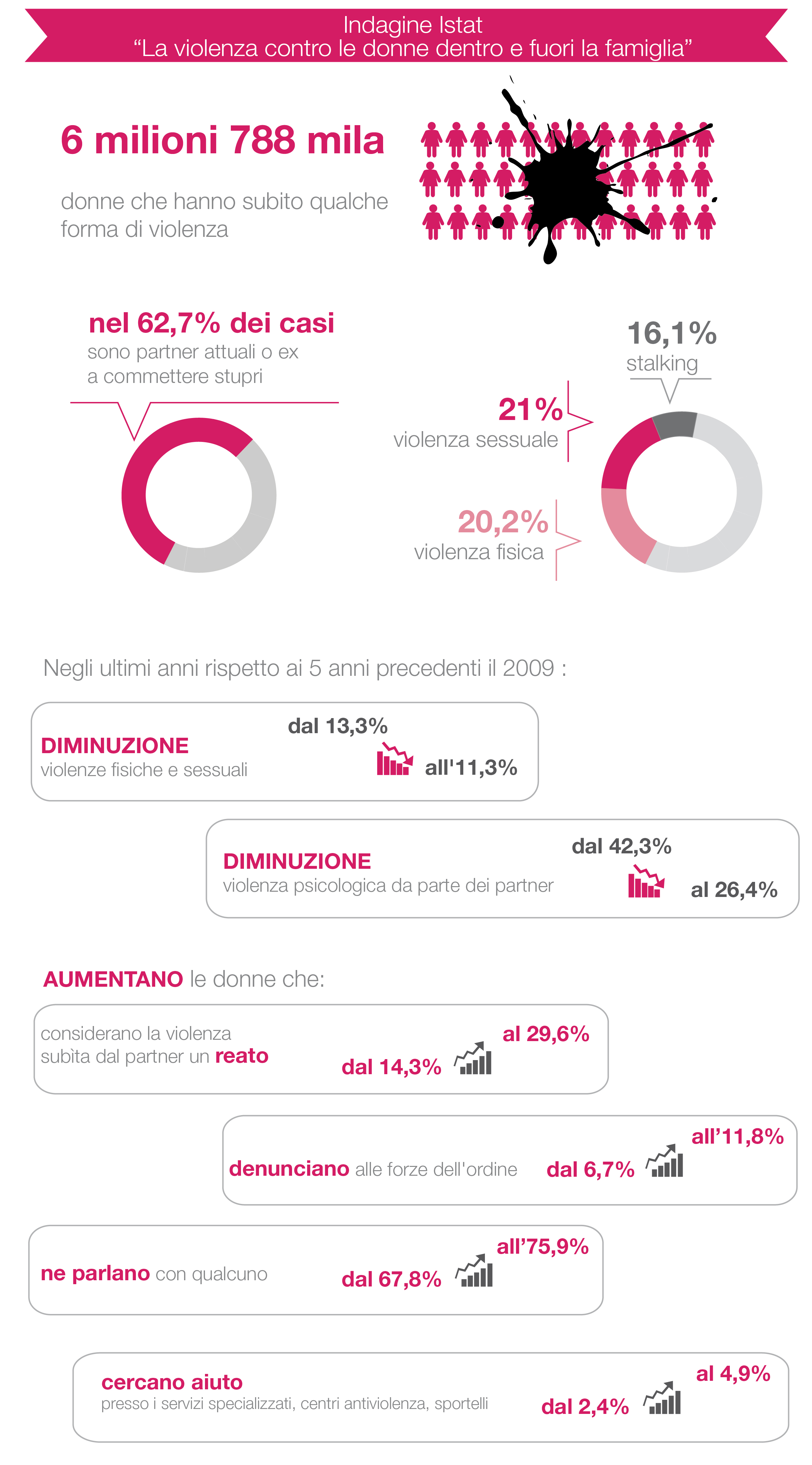 uno o più uomini hanno usato violenza almeno una volta nella vita di quasi 7 milioni di donne. L'indagine si rivolge a un campione statistico femminile, mentre rimane da interrogare il pubblico maschile.